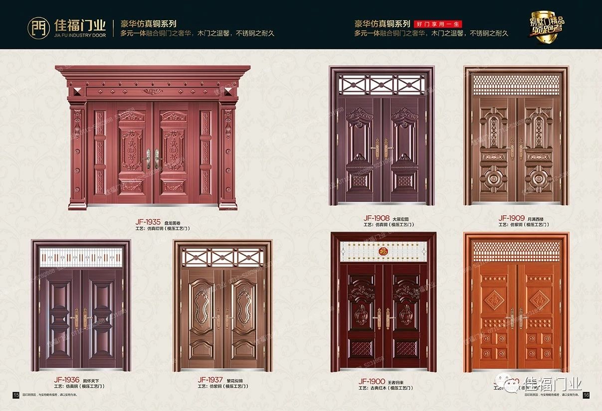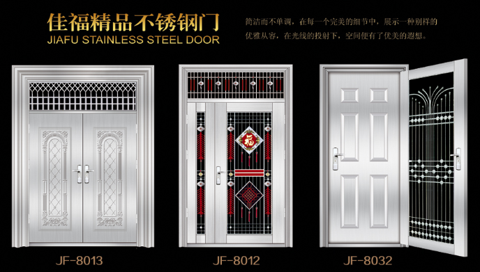 本公司成立于2004年,已有19年的生產(chǎn)進(jìn)戶(hù)門(mén)的經(jīng)驗(yàn)積累。公司現(xiàn)擁有鋼質(zhì)非標(biāo)門(mén)生產(chǎn)線、標(biāo)門(mén)生產(chǎn)線及不銹鋼門(mén)三條生產(chǎn)線,我公司專(zhuān)業(yè)設(shè)計(jì)、制造、銷(xiāo)售鋼質(zhì)系列進(jìn)戶(hù)門(mén)、防盜門(mén)、不銹鋼門(mén)等產(chǎn)品,擁有“宇佳?盈福”和“佳有福”、“家福.興隆”三個(gè)自主品牌和產(chǎn)品系列。公司引進(jìn)了先進(jìn)的生產(chǎn)技術(shù),配置了成龍配套的現(xiàn)代化生產(chǎn)流水線。產(chǎn)品工藝成熟,質(zhì)量上乘。同時(shí),公司廣納賢才,聚集了一批具有開(kāi)拓創(chuàng)新精神的各類(lèi)高級(jí)管理和技術(shù)人才,建立了一套先進(jìn)的管理模式。